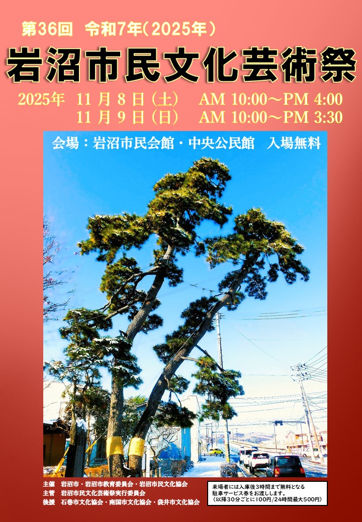 岩沼市内を拠点として文化芸術活動をしている団体や個人の作品の展示や舞台での発表が行われます。また、市内小学生作品、友好都市静岡県袋井市文化協会作品の展示もあわせて行います。